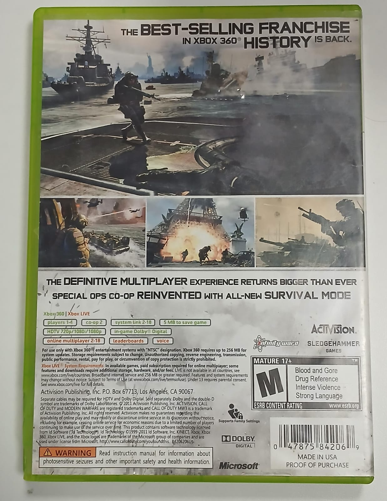 Call of Duty Modern Warfare 3 Mídia física para Xbox 360 Original funcionando perfeitamente.