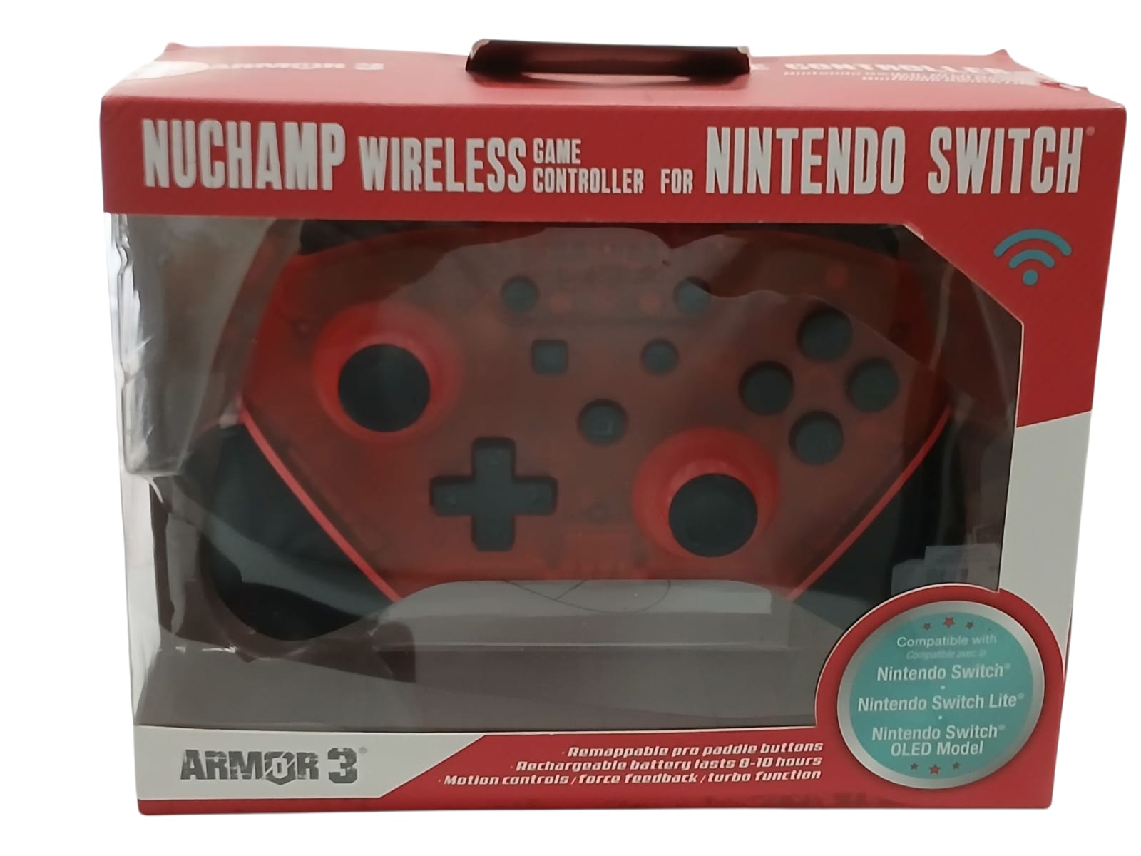 Controle sem fio Nuchamp Armor 3 para Nintendo Switch, com design ergonômico e confortável, ideal para longas sessões de jogo.
