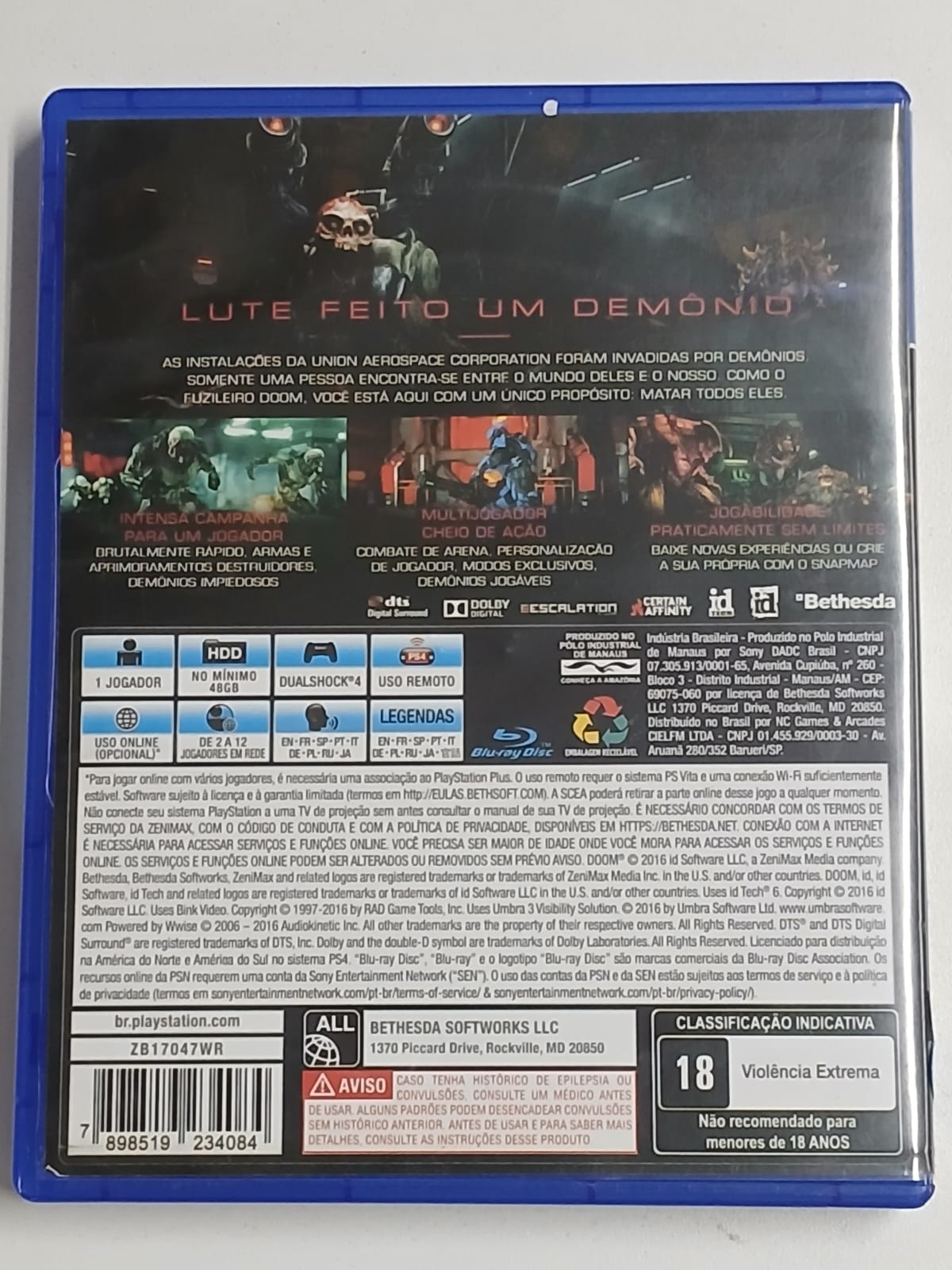 Doom Mídia física para Playstation 4 PS4 Original funcionando perfeitamente.